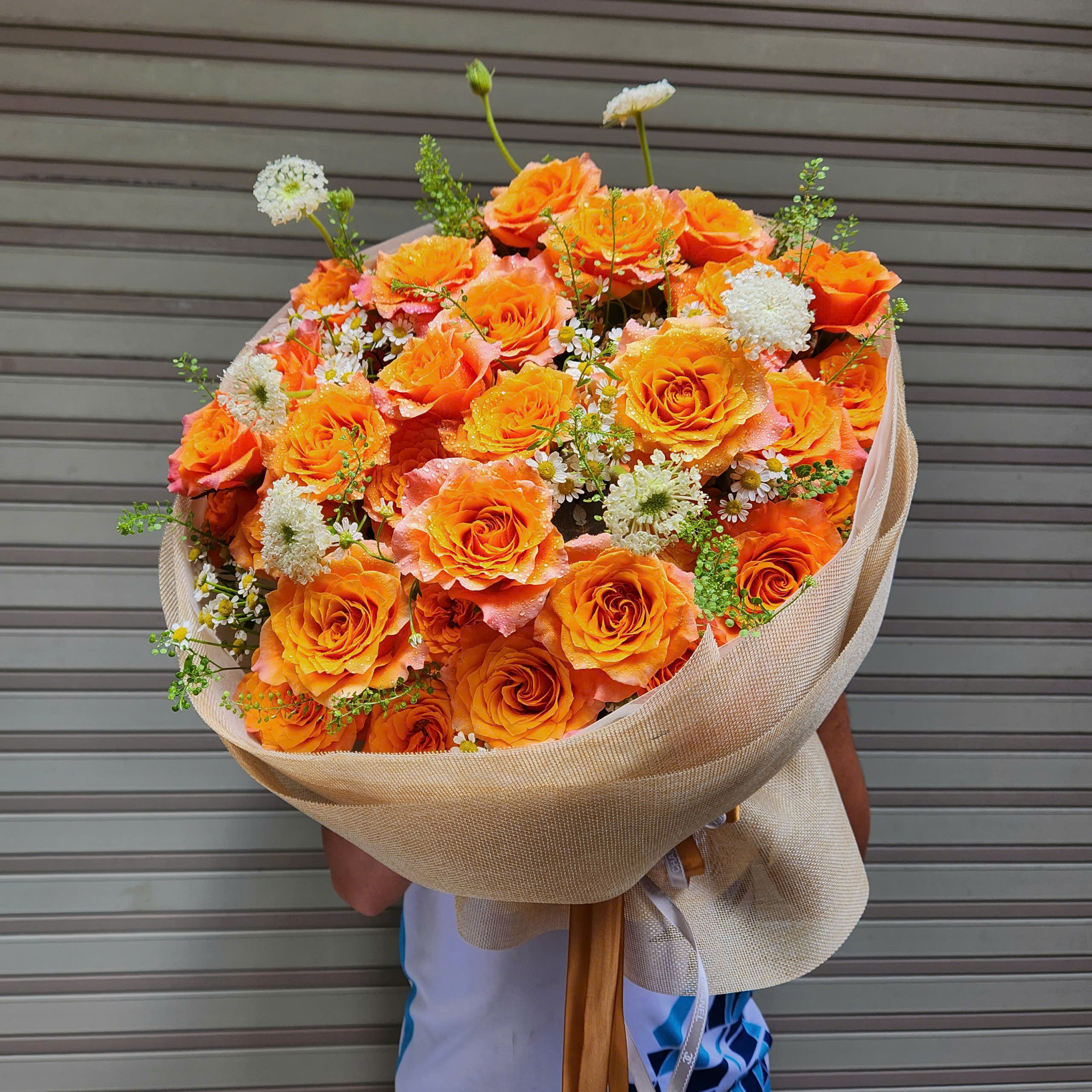 Hoa hồng Camspired nổi bật với tông màu cam rực rỡ, một gam màu biểu tượng cho niềm vui, hạnh phúc và năng lượng tích cực. Tại Shop Hoa Tươi Angel Quận 3, mỗi bó hoa hồng Camspired được thiết kế tỉ mỉ, kết hợp hài hòa giữa số lượng hoa vừa đủ, phong cách gói tinh tế với giấy bố nâu sang trọng và điểm xuyết thêm những bông hoa baby trắng hoặc cúc trắng nhỏ xinh, tạo nên một tổng thể vừa hiện đại, vừa gần gũi.