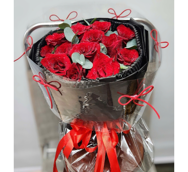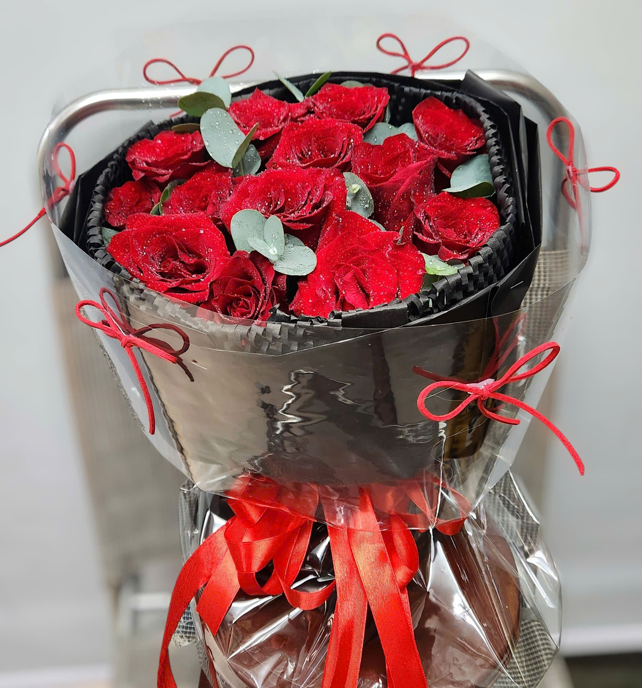 Bó Hoa Hồng Đỏ Mix Các Loại Hoa Lá Độc Đáo