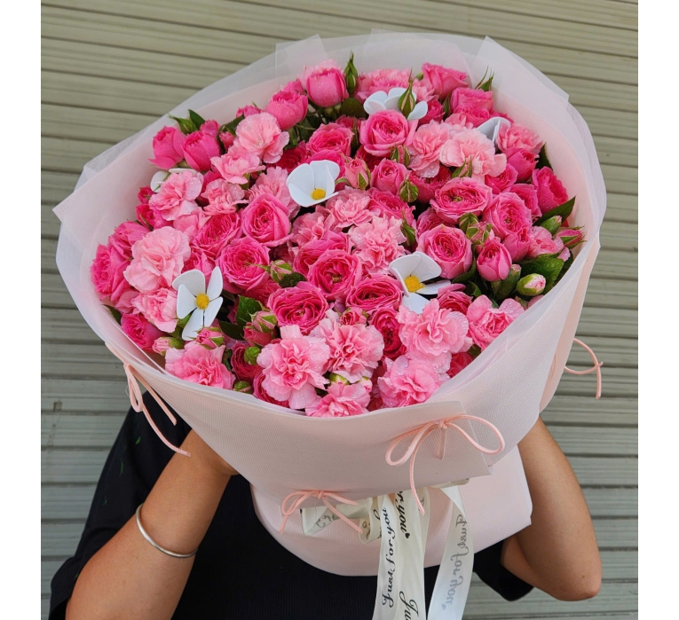 Bó Hoa Tone Trắng – Hồng - Thanh Lịch và Sang Trọng