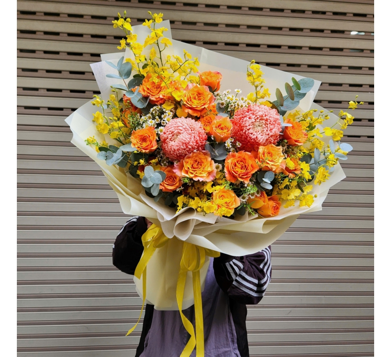Sự kết hợp giữa nhiều loại hoa nhập khẩu cao cấp với phong cách cắm hoa Châu Âu sẽ tạo nên một bó hoa độc đáo, sang trọng và đẳng cấp.