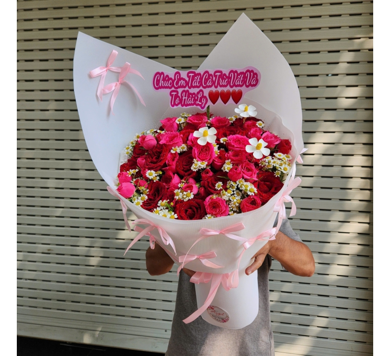 Bó Hoa Sophia Phối Hoa Hồng Đỏ – Thiết Kế Hot Trend 2026