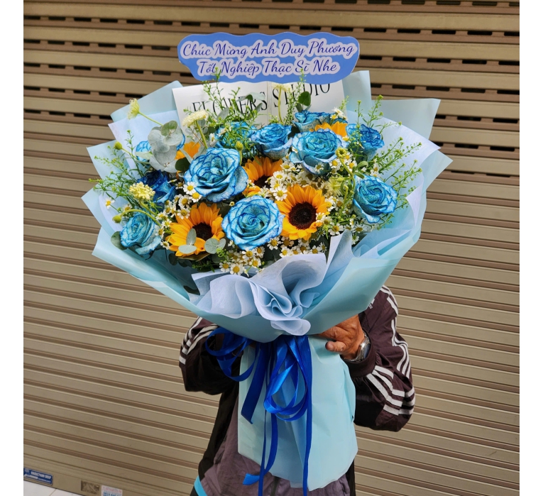Bó Hoa Tốt Nghiệp Màu Xanh Dương: Lời Chúc Tương Lai Rạng Rỡ Từ Hoa Tươi Angel