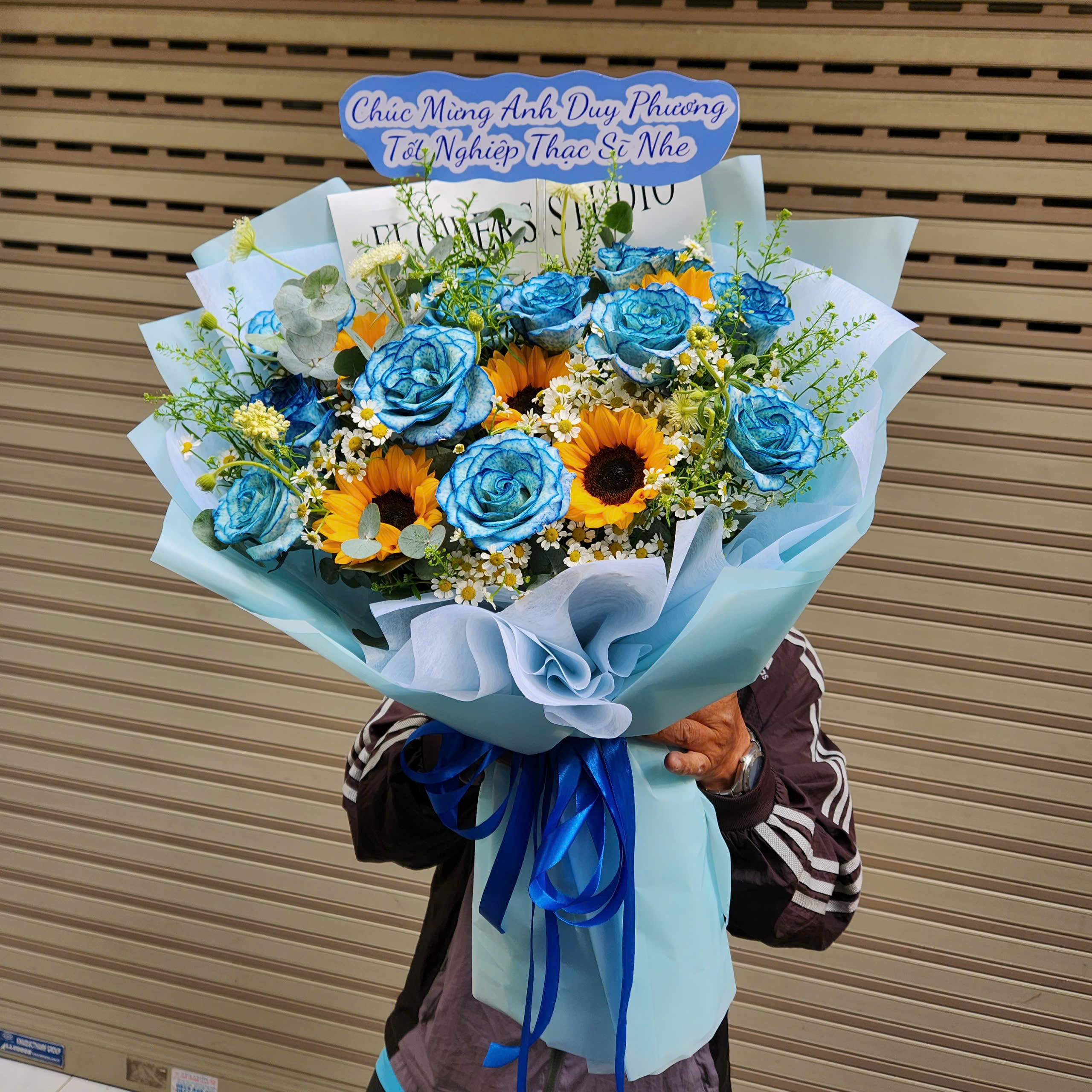 7. Dịch vụ giao hoa tốt nghiệp màu xanh dương nhanh tại TP.HCM
