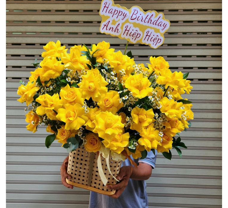 • Lời chúc thành công: Giỏ hoa hồng vàng phù hợp để chúc mừng những dịp quan trọng như khai trương, thăng chức hay kỷ niệm.