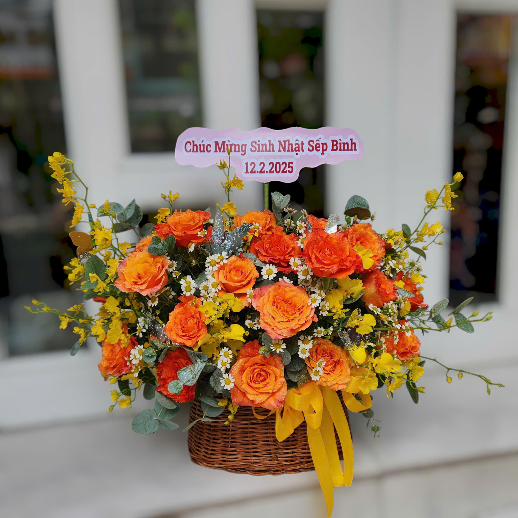 Giỏ hoa sinh nhật đẹp cho nam là lựa chọn hoàn hảo để gửi gắm lời chúc mừng, sự tôn trọng và tình cảm chân thành đến phái mạnh. Với tông màu mạnh mẽ, thiết kế sang trọng và hoa tươi đa dạng như hướng dương, hồng xanh, lan hồ điệp..., giỏ hoa mang đến vẻ đẹp nam tính, tinh tế và đầy ý nghĩa. Phù hợp để tặng sếp, bạn trai, chồng hay bạn bè trong dịp sinh nhật.