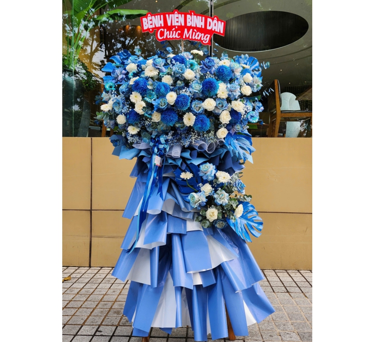 Màu xanh là biểu tượng của sự tươi mới, hy vọng và phát triển. Khi được sử dụng trong hoa tươi, tông màu xanh mang đến cảm giác thư thái, bình an và sức sống mãnh liệt. Chọn kệ hoa chúc mừng khai trương tông xanh không chỉ thể hiện sự chân thành, mà còn gửi gắm thông điệp về một sự khởi đầu thuận lợi, một tương lai tươi sáng cho doanh nghiệp của bạn.