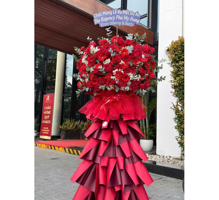 Kệ Hoa Chúc Mừng Tone Đỏ May Mắn – Khai Trương Hồng Phát