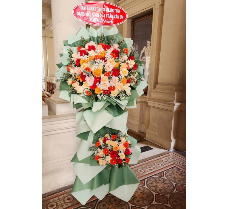 Một lẵng hoa đẹp sẽ giúp buổi lễ thêm trang trọng và truyền tải trọn vẹn lời chúc mừng.